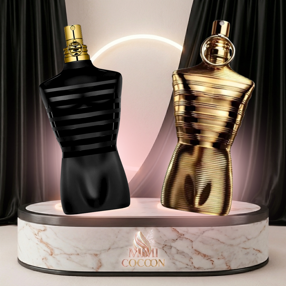 L’essence ultime de la masculinité audacieuse. Ce duo combine la chaleur intense du Male Elixir Absolu avec l’élégance boisée du Male Le Parfum.